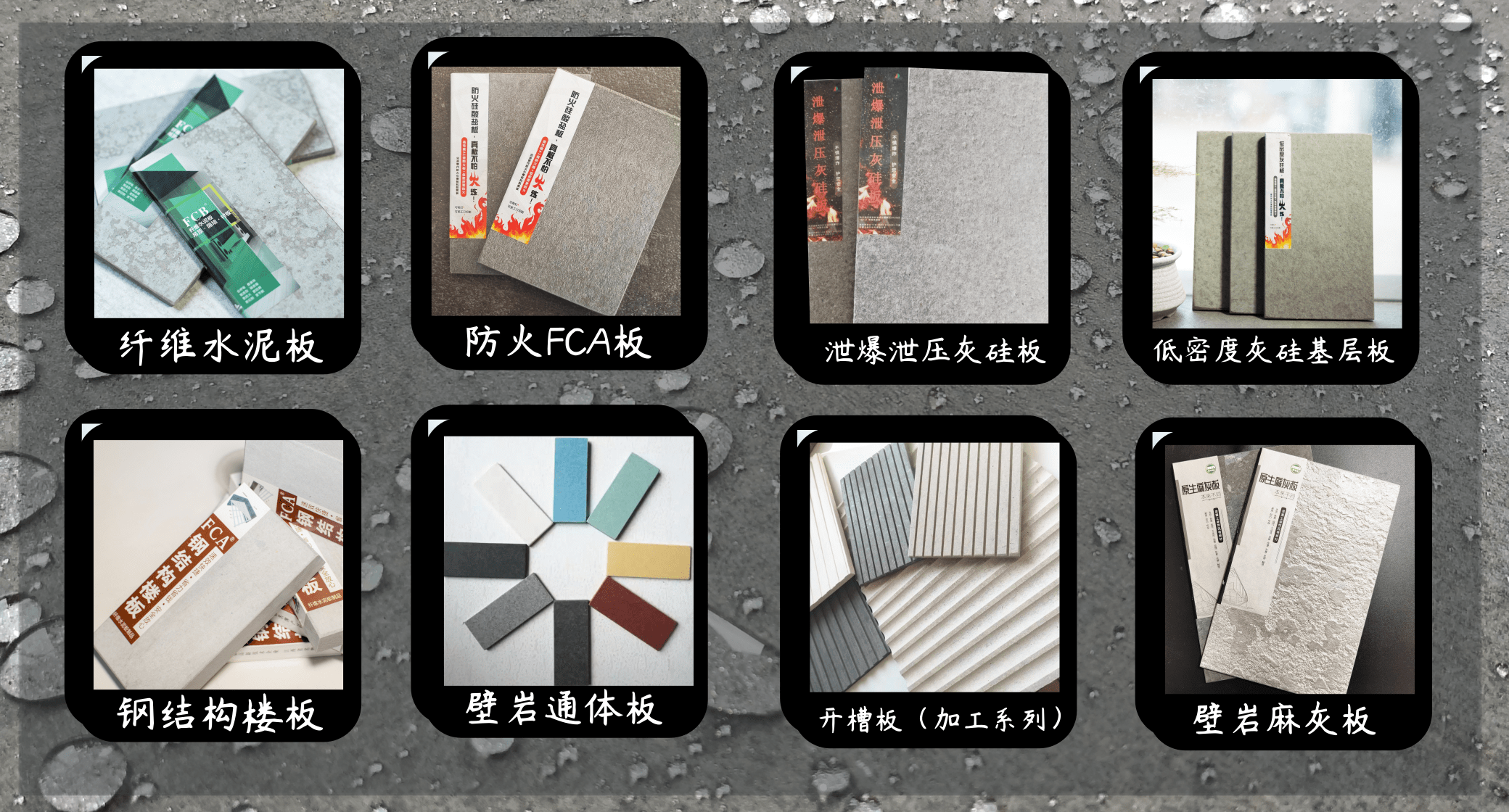 基礎(chǔ)板系列 天花板吊頂系列 玻鎂板系列 混凝土風(fēng)格清水板系列 彩色通體壁巖板系列 特種用途板材系列 輕質(zhì)隔墻板系列 玻鎂復(fù)合風(fēng)管系列 被動式防火板系列 硅藻土系列